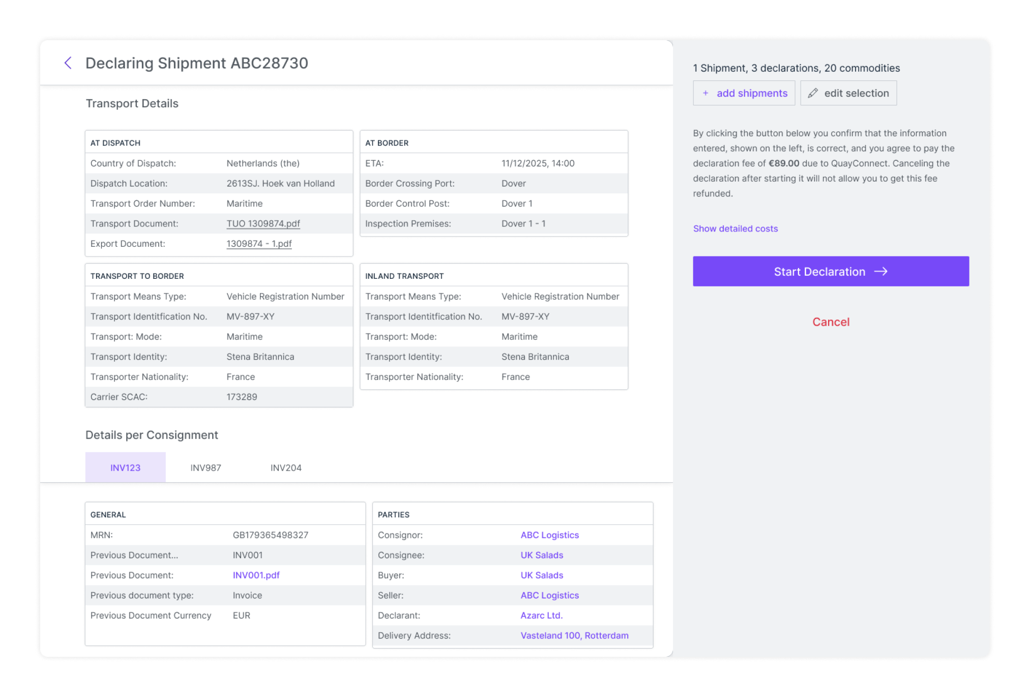 For companies with limited development resources, QuayConnect provides an intuitive web interface, enabling users to quickly create declarations from scratch—no customs expertise required.